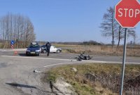 Do wypadku doszło wczoraj rano na drodze wojewódzkiej nr 835 w Księżpolu. Wysłany na miejsce patrol ruchu drogowego zabezpieczył miejsce zdarzenia i ustalił jego przebieg. Ze wstępnych czynności funkcjonariuszy wynika, że kierujący motorowerem wjechał na skrzyżowanie wprost pod jadący prawidłowo drogą W835 samochód osobowy. Wyjeżdżając z drogi podporządkowanej nie udzielając pierwszeństwa przejazdu, kierowca rometa doprowadził do zderzenia z osobówką.