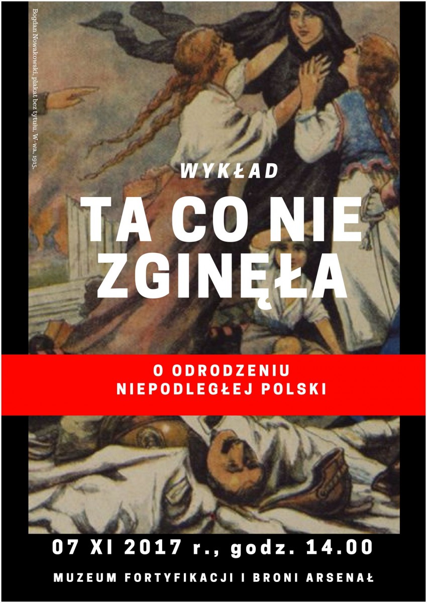 dodano: 24.10.2017Wykład "Ta co nie zginęła, o odrodzeniu Niepodległej Polski" poprowadzi dr Jacek Feduszka. Odbędzie się on w Muzeum Fortyfikacji i Broni Arsenał, 7 listopada 2017 r., o godz. 14.00 na piętrze zamojskiego Arsenału.