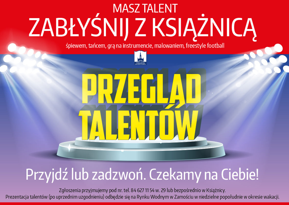 Prezentacja talentów (po uprzednim uzgodnieniu) odbędzie się na Rynku Wodnym w Zamościu w niedzielne popołudnie w okresie wakacji.
