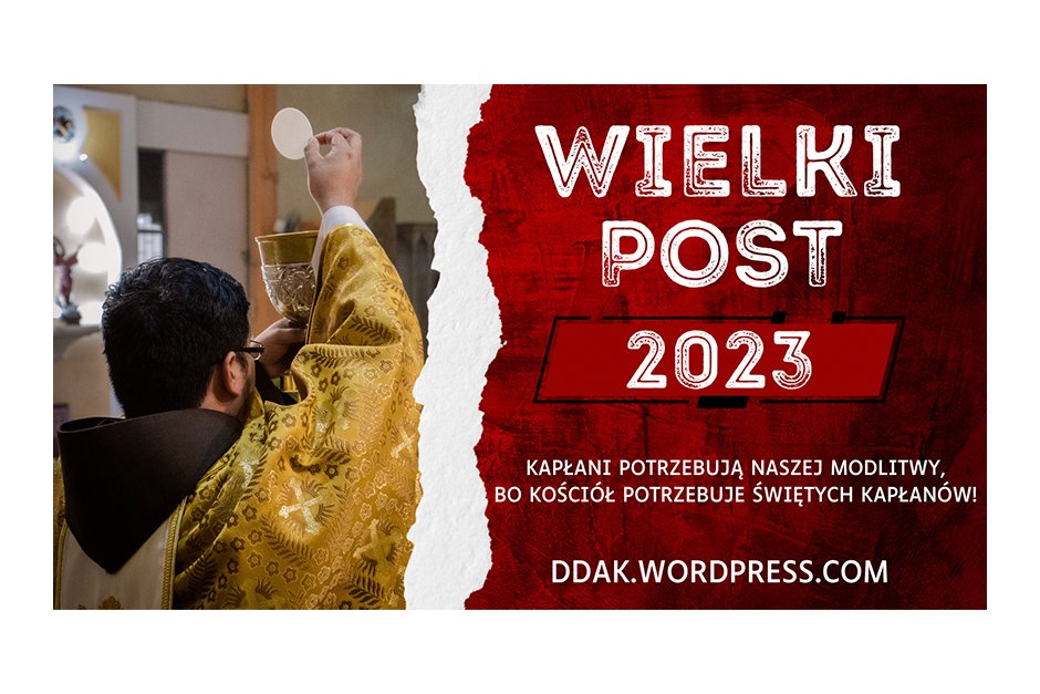 Jak co roku - chcielibyśmy zaprosić do podjęcia modlitwy za kapłanów w ramach wielkopostnego postanowienia. Zachęcamy do zapoznania się z informacjami na temat tej akcji, dostępnymi na stronie internetowej DDAK: https://ddak.wordpress.com/wielkipost2023/ Wiadomości o wielkopostnej akcji oraz funkcjonowaniu DDAK można znaleźć również na Facebooku: https://www.facebook.com/photo/?fbid=571287448358106&set=a.468437051976480