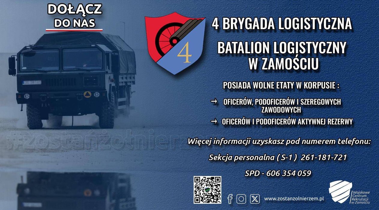 dodano: 20.01.2025Dołącz do służby w batalionie logistycznym w Zamościu!