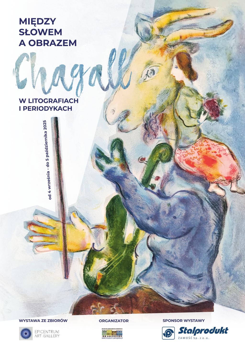 To wyjątkowa okazja, aby zapoznać się z twórczością jednego z najwybitniejszych artystów XX wieku w sercu Zamościa. Wystawa zaprezentuje 47 prac Marcela Chagalla – litografie oraz prace publikowane w periodykach, udostępnione dzięki współpracy z Epicentrum Art Gallery. Ekspozycja pozwoli zwiedzającym zobaczyć, w jaki sposób artysta łączył rzeczywistość z wyobraźnią, a także głębiej poznać jego twórczy świat. Realizacja wystawy była możliwa dzięki wsparciu finansowemu firmy Stalprodukt Zamość.