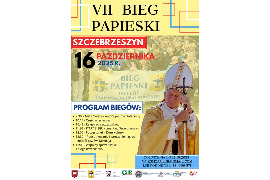 dodano: 06.10.2025Zapraszamy do udziału w kolejnej edycji Biegu Papieskiego KSM. Spotkamy się 16 października w Szczebrzeszynie.