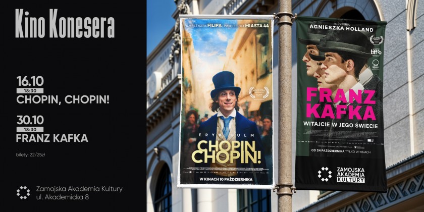 dodano: 13.10.2025Zamojska Akademia Kultury oraz Klub Filmowy „Senso” serdecznie zapraszają na spotkanie filmowe z cyklu Kino Konesera. W październiku na ekranie dwie widowiskowe filmowe biografie: Chopina i Franza Kafki. Seanse odbędą się w sali kinowej Zamojskiej Akademii Kultury, II piętro, wejście od ul. Akademickiej 8 i ul. Pereca (winda).