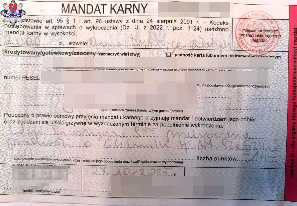 Zgodnie z obowiązujacymi przepisami mężczyźnie zostało zatrzymane prawo jazdy na okres 3 miesięcy. Dodatkowo został on ukarany mandatem w wysokości 2000 złotych i 14 punktami karnymi.