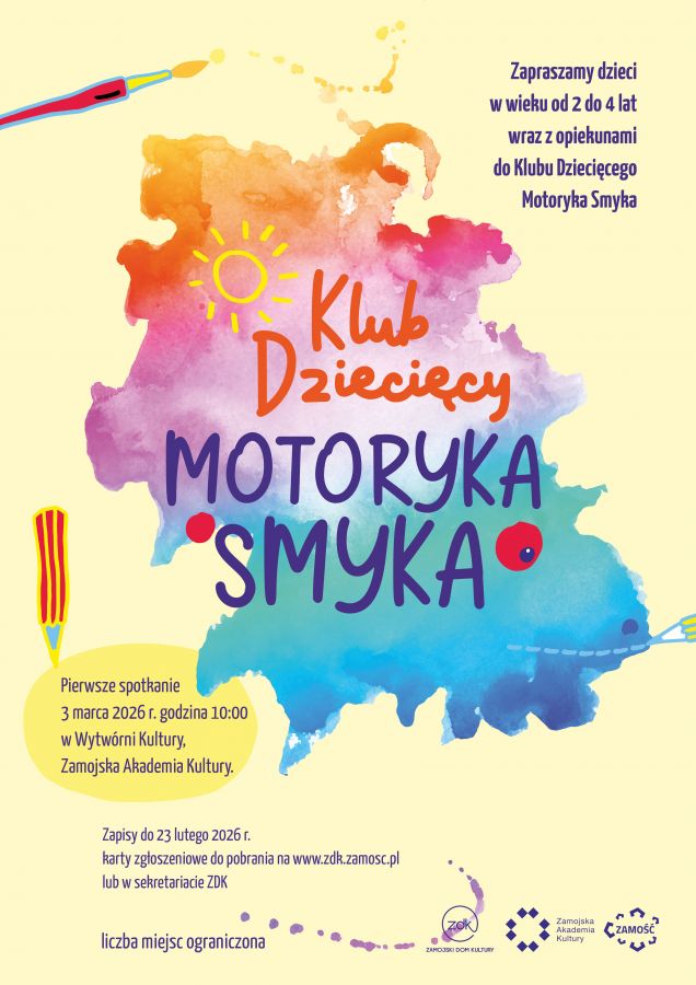 Karty zgłoszenia do pobrania na www.zdk.zamosc.pl lub w sekretariacie ZDK. Zapisy do 23 lutego 2026 r. Liczba miejsc jest ograniczona.