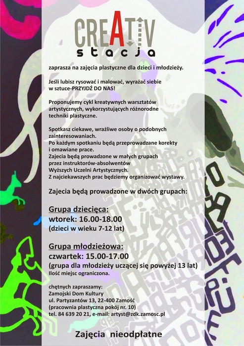 tel. 846392021, e-mail; artyst@zdk.zamosc.pl